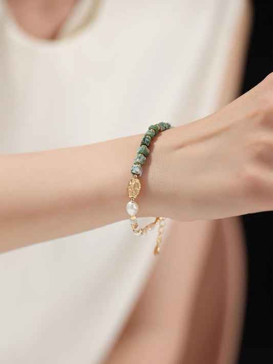 Beads Grass Agate Strawberry Quartz Silver Bracelet