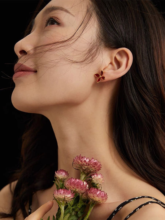 Pure Silver Heart-Shaped Red Drip Glaze Earrings