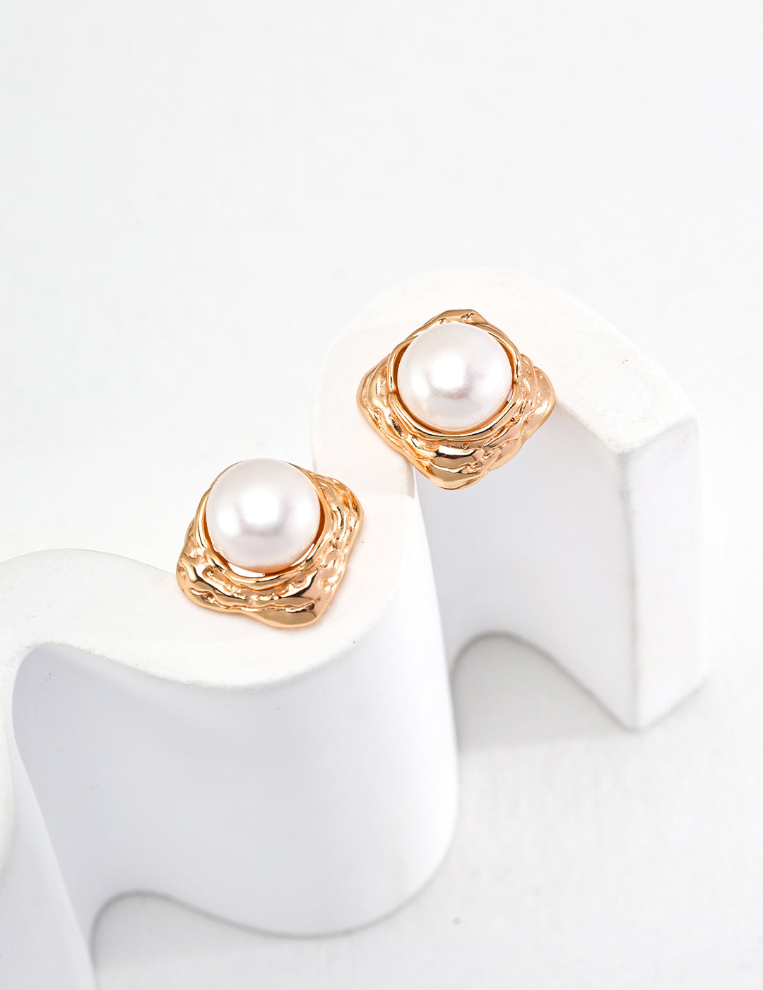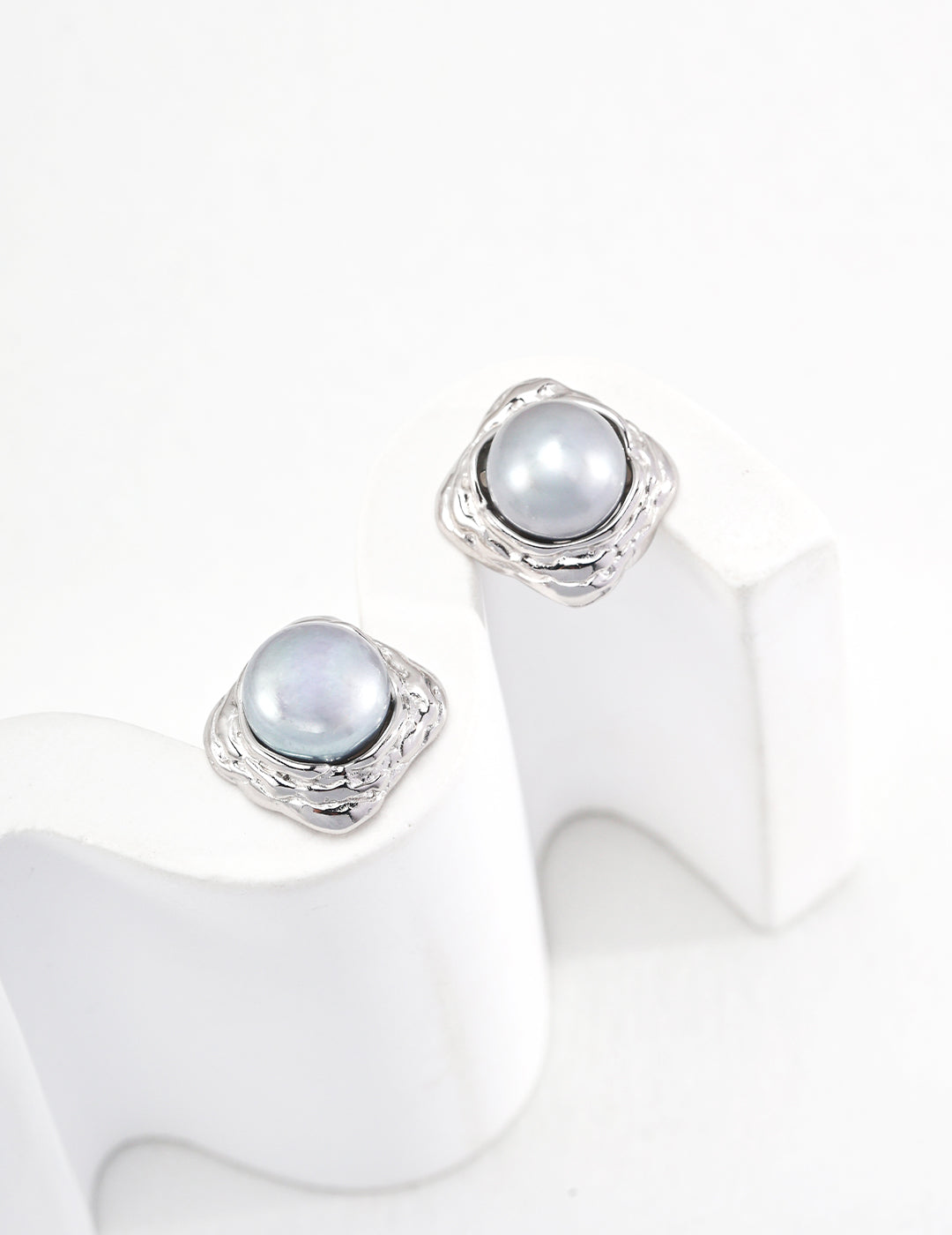 Sterling Silver Pearl Stud Earrings, a domestic favorite and a staple in bridal jewelry. These stunning classic pearl earrings feature luxurious gray-white pearls set in 925 silver, available in vintage gold and platinum finishes.
