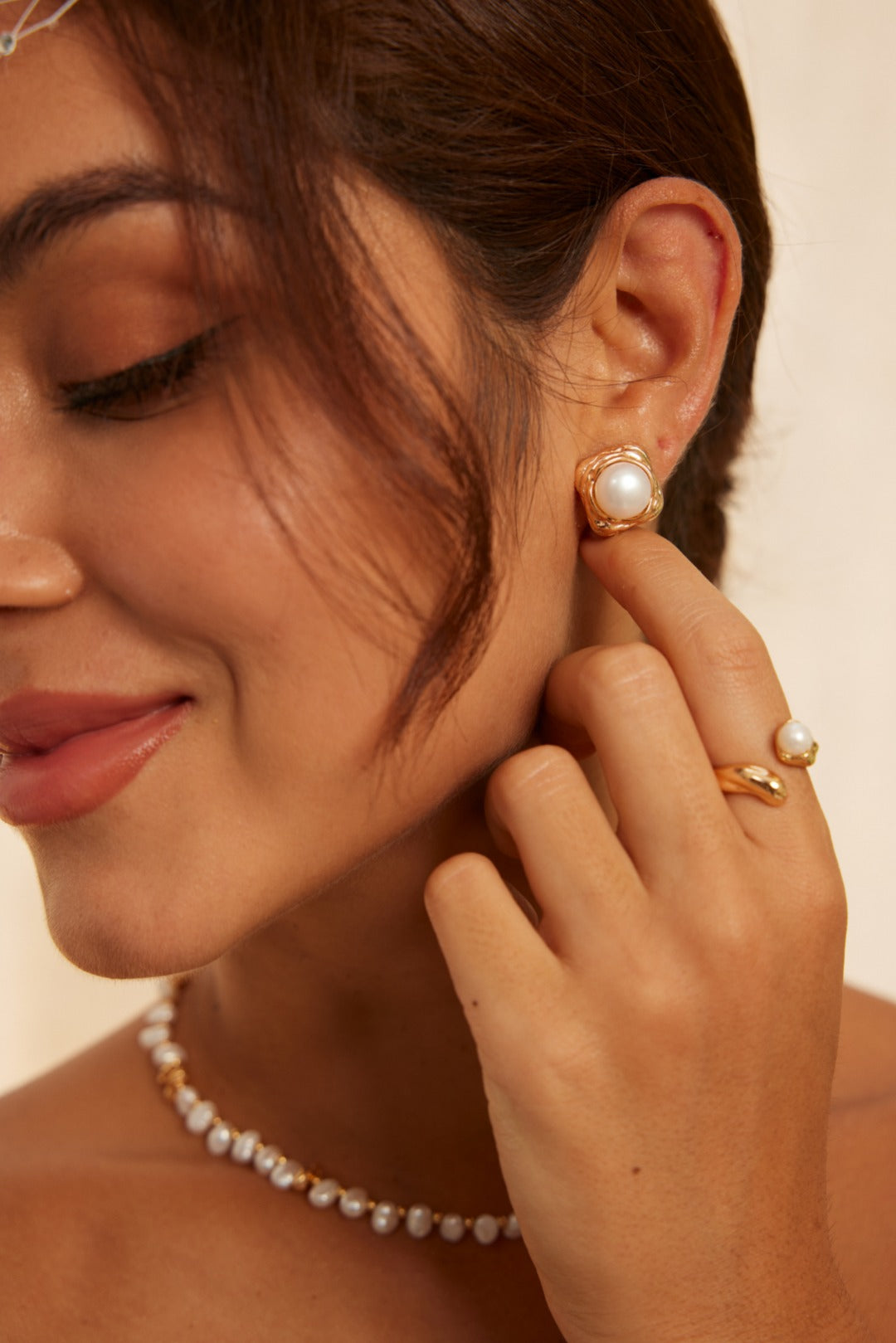 Perfect for brides, these classic stud earrings add a touch of sophistication and refinement to any bridal look. Measuring approximately 1.5cm in width with pearls around 1.1cm, they offer a perfect balance of understated elegance and timeless beauty.