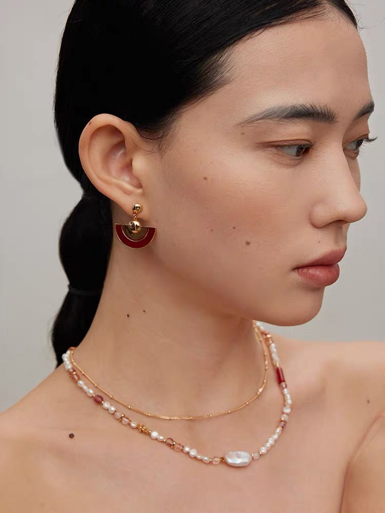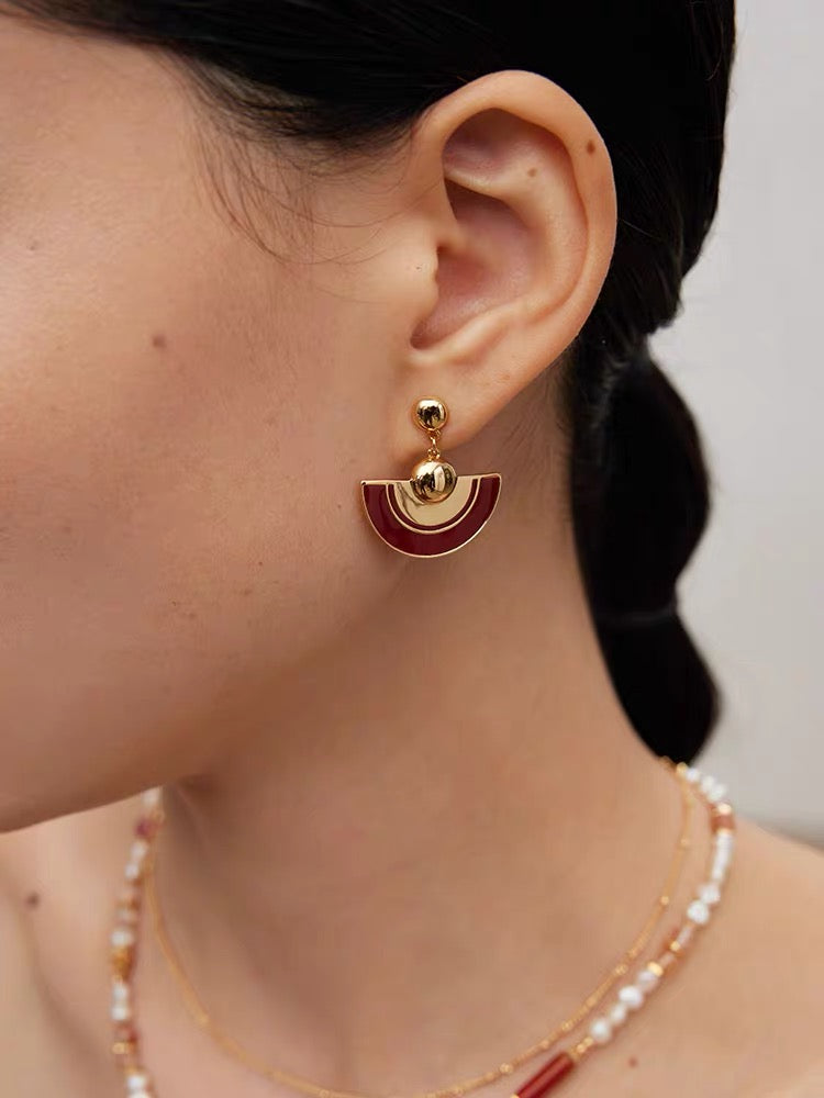 The combination of gold and dark red is simply perfect! Drip glaze craftsmanship ensures lasting color retention. Classic ear studs, versatile and suitable for all ears.