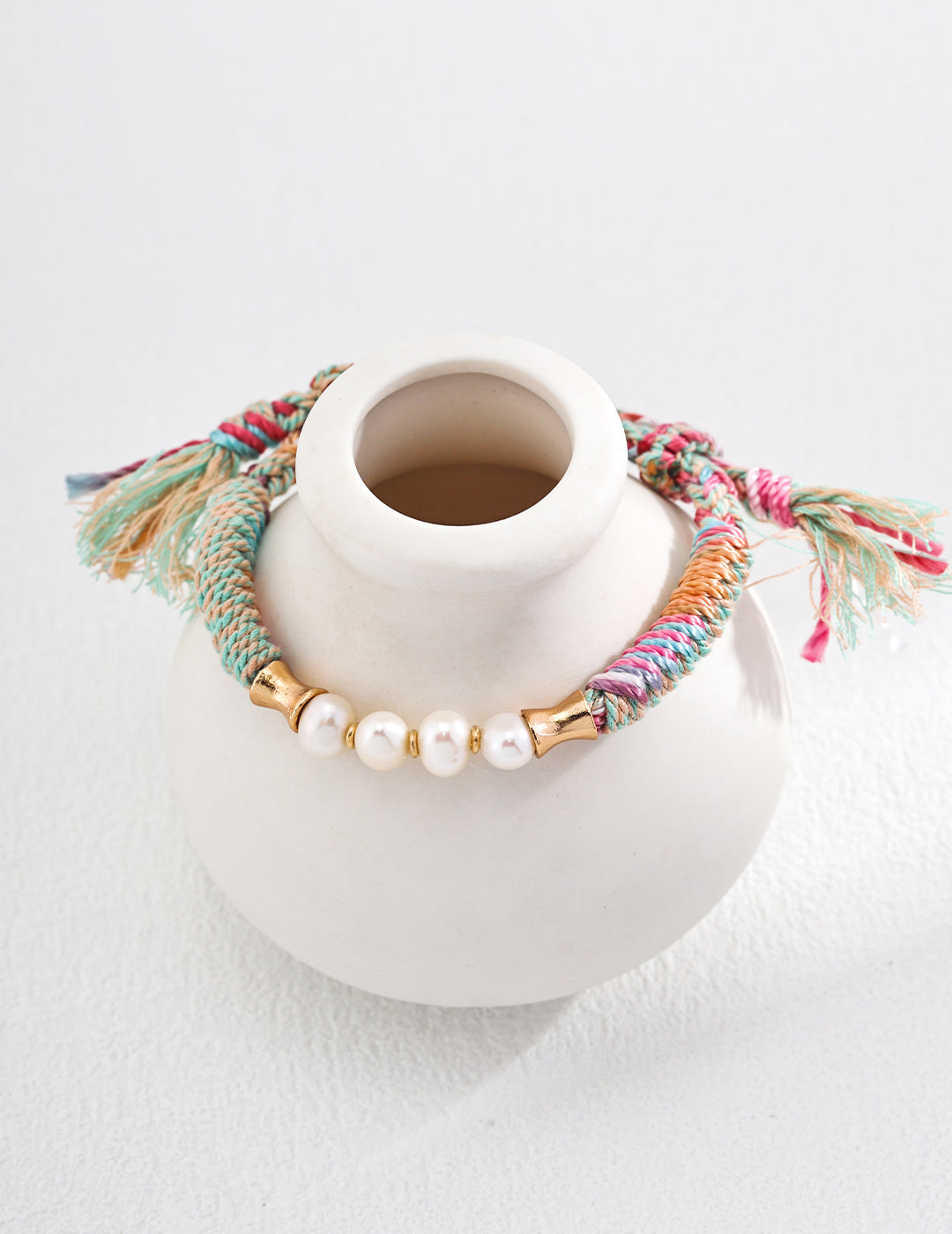 Materials: 925 Silver-18k Gold Vermeil / Natural Pearl / Hemp Rope