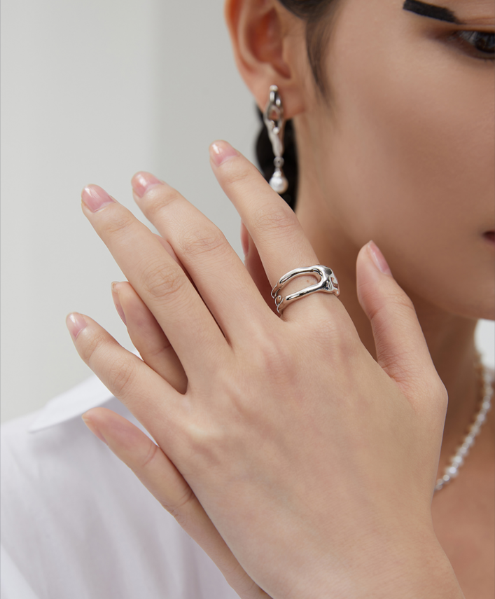 Crafted from pure silver, creating a liquid-like appearance. Graceful simplicity with stylish design.