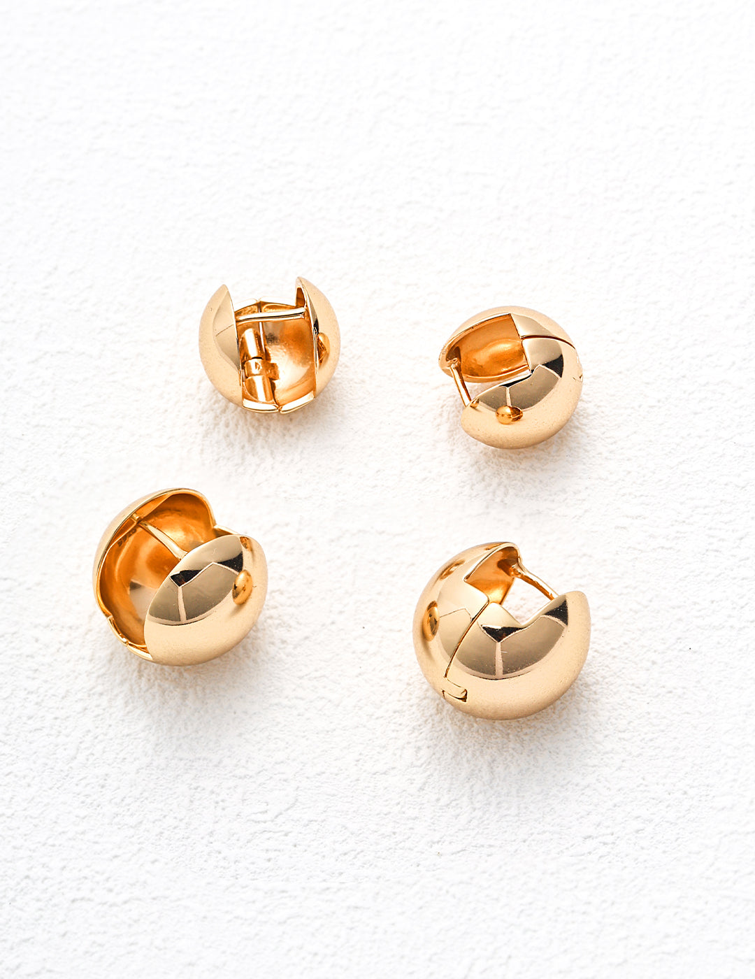 Designed with a sleek, modern round ball shape, these earrings are perfect for any occasion—from daily wear to special events. Available in two sizes, 14mm and 16mm, they feature a comfortable fit with inner diameters of 7.5mm and 8mm.