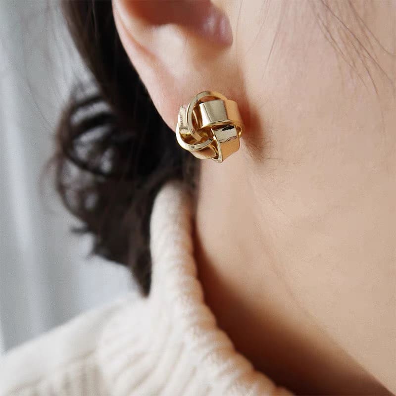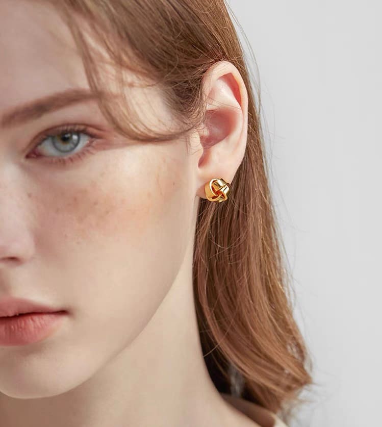 Add a touch of charm with these shiny gold knot-shaped studs. Crafted from 925 silver, they are available in vintage gold and white gold finishes. Measuring approximately 1.5 cm in width and height, these minimalist yet stylish earrings radiate effortless sophistication and allure, perfect for elevating any look.